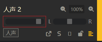 在轨道面板,左右拖动滑块,即可调整轨道音量。双击滑块可复位。